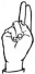 На ћирилици написано КОСТАДИН СКЛОПИЋ састоји се из 15 слова [?]. Исписано ћириличном једноручном азбуком за глувонеме: